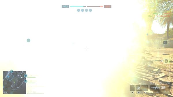 In the following screenshot, If I look closely at the source of this blinding light, I see the source, which is the flames in the house. As soon as I turn my view a little, the screen is completely flashing: