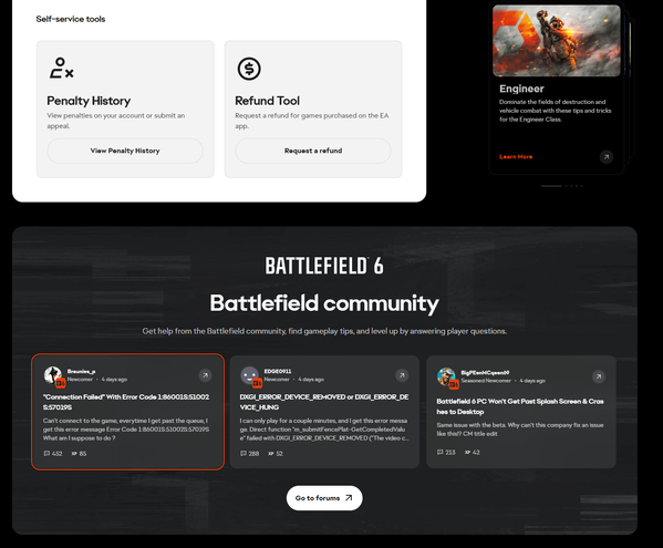 joke of a company, this forum thread literally shows up first on the ea help bf6 page and they havent updated us in 4 **bleep**ING DAYS