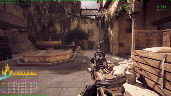 The blue Client Frame Time (CFT) line in the graph is at 20ms. This means your framerate is 50fps.
