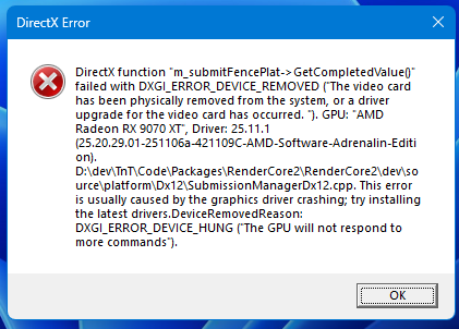 DXGI_ERROR_DEVICE_REMOVED ADRENALIN 25.11.1
