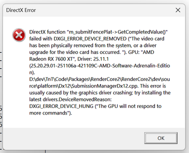 DXGI_ERROR_DEVICE_REMOVED error keeps popping up. I cannot even finish one game. It got much worse since last update.