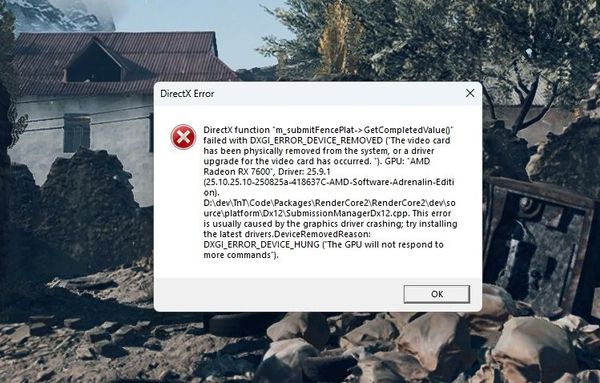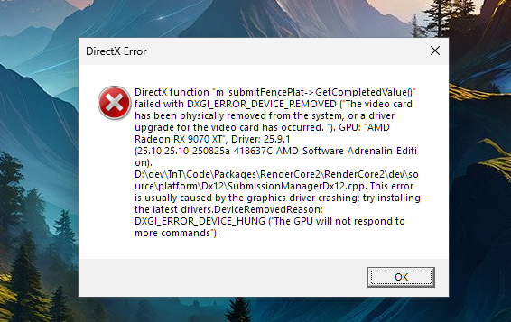 DXGI_ERROR_DEVICE_REMOVED or DXGI_ERROR_DEVICE_HUNG