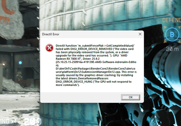 e\platform\Dx12\SubmissionManagerDx12.cpp. This error is usually caused by the graphics driver crashing; try installing the latest drivers.DeviceRemovedReason: