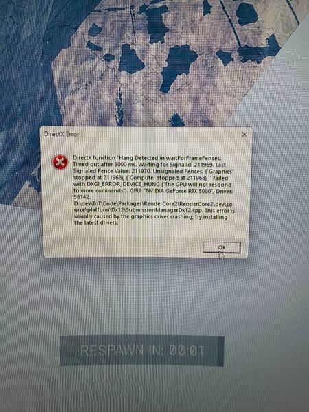 e\platform\Dx12\SubmissionManagerDx12.cpp. This error is usually caused by the graphics driver crashing; try installing the latest drivers.DeviceRemovedReason: