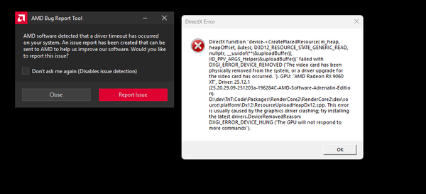 DXGI_ERROR_DEVICE_REMOVED or DXGI_ERROR_DEVICE_HUNG