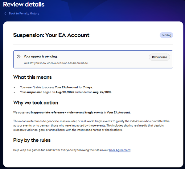 EA account Banned for slurs, Can I ever play again ?