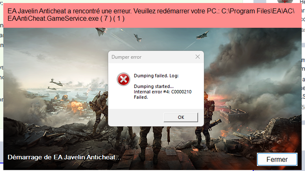 EA Javelin Anticheat encountered an error. (7) (2) Internal error #4: C0000210