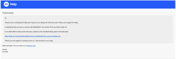 Our Anti-Cheat team has identified the root cause of this specific issue and deployed a fix. The update has already rolled out for Battlefield titles, and players should now be able to launch the game normally again. Other affected EA titles are receiving the update as we speak, and they should recover shortly as the rollout is completed.