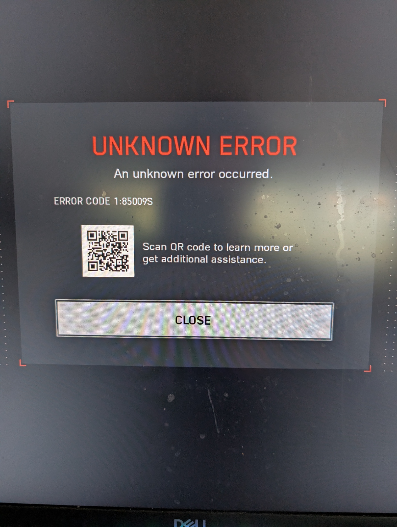 After just a few minutes of gameplay, the game consistently crashes with the following message: UNKNOWN ERROR: ERROR CODE 1:85009S Once this error occurs, I am unable to return to the game without restarting game othwerwise I immediately receive the same error again .