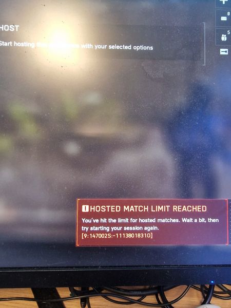Today I've tried to start my new portal custom map but this error appeared: HOSTED MATCH LIMIT REACHED [9:147002S:-11138018310]