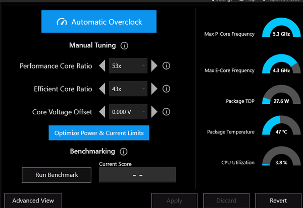 I also wanted to try using Intel XTU (Extreme Tuning Utility) to see if undervolting my CPU would help, but all the core CPU options in XTU are greyed out and I can't make any changes.