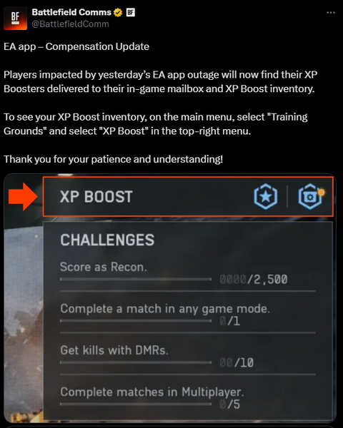 I just noticed that everyone who encountered a problem on the first day of the game launch, namely that the EA app had issues with multiplayer and career modes being unavailable, received bonuses as a reward for their patience. However, I was also among those who encountered this problem, but I did not receive any bonuses in the form of boosts.
