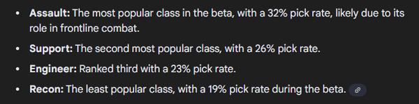 Ok, so ALL those things being said, I am going to take a moment to point out a few things. Assault, LMG, SMGs and Carbines are about 3 to 4 shots to kill and happen in about a split second to kill. Between time to kill and rate of fire. Second off lets talk about how ABUNDANT AUTO AIM features there are. I understand it's to help balance console controller VS keyboard and mouse. That being said, let's talk about Recon. From the gadgets and stuff available to "gather intel" it SEEMS to me that they would like people to observe the enemy team. Well, outside of the drone or placing TUGS somewhere and HOPE it doesn't get spotted and taken out, this seems near impossible. Let alone you DARE use the "aim down sights spotting" ability that the class has LOCKED to it. Or do it from a distance. Scope glint makes a HUGE "kick me" sign and if your WITHIN about 150m from the thing your observing to point out to your team, well that SMG guy will just auto snap crosshairs to your head and laser beam the next 3 to 4 shots to your head area and your done. MOST of the maps make it pretty difficult to do just that. Be further then 150m with good sightlines on where the enemy would usually be congregating. Let alone you DARE try to get on point with the teammates. I understand that giving the spawn beacon to assault was to prevent recon guys from putting it up and just hanging out in a niche spot to just try to snipe the whole match. Well with scope glint, the fact that every time you shoot you "self-repot" on the mini map and most of the time without a suppressor you repot in 3D space as well. Its concerning enough to just observe let alone pull the trigger at someone. Could a recon guy move up to the outskirts of an objective and place a spawn beacon then fall a little further back to protect it for the rest of his team mates to spawn on it and continue the assault. Sure, that would be an idea..... Oh yeah, no spawn beacon. Getting rid of scope glint and knocking self-reporting out would be a "fair" start. Make people spot the sniper and hunt them like before. Also, the trail from the shot fired to the impact spot, I THINK should ONLY be visible to the shooter. NOT everyone on the map. This would further help intensify the recon hunting recon type of scenarios. Plus, scope glint makes NO SENSE when your in a dark building and peeking at another sniper and the only way they had an idea of you being there was the huge non beneficial flashlight that only your enemies get to see was just turned on for you to see where they could be located at. Those few little changes would make a BIG difference to making the recon "sniper" path a little more fun mentally and give you more cat VS mouse kind of engagements, even if it was just between two or three snipers when trying to support the team as well, would give recon players a LOT to get emotionally invested in. Second off, the amount of times I been hit in the head at a long distance by some other sniper "dancing" side to side is pure frustration. The sniper class SHOULD be about taking your time and lining up a good shot before pulling the trigger, lets increase the bloom of moving and shooting when equipped with a sniper rifle. Standing still for .75 of a second to 1.5 seconds should be a good fair shot. This helps promote people to engage with the bullet drop and bullet lead that you have to have when engaging targets at just about ANY range. The laser range finder helps with ONLY HALF of the equation there. The ONE thing I feel is SUPER GOOD is the laser range finder on a sniper rifle. Again though, IF you want it to be really efficient, your going to track or watch that target until they slow down and or stop to take a well-placed shot at someone before you engage. Which if I might remind you, is risky business due to scope glint. it REALLY feels like MOST if not ALL the game mechanics of BF6 recon class go AGAINST how it's SUGGESTED that it is played by game developers. I never thought I would have to say that but um... its the truth. Next on my hit list to rant about for a moment, the DMRs. Um, improvements seem to have been made at times with these. Feels mostly nonexistent with scope glint and you can tell. But one tap headshots, not a thing. Two? ok that would be a good start as well. Limit the amount of "high magnification" optics they have available to them and that is a fair compromise. BUT, stick with me here, I think the sniper class SHOULD just by selecting it have all their headshots upgraded to "kill confirmed" headshots. Yes, even the ones from the pistols. Why? Because even the pistol selection is trash and takes way too long to kill even when you have the drop on someone. So yes, I do believe if you get someone in the head enough times to kill them, having a random defib run by and have the guy you just gunned down kill you with his carbine is more frustrating then it should be. What else does this do? Give recon class a bit of "fear" that they can use when getting up close and personal. The sniper and the "spec ops" side of recon could BOTH REALLY use that and it would unite people to either protect their recon player, due to spawn beacons and being able to put guys down and make them have to go back to base to respawn, would be promoting team play on the recon guys side as well as the team opposed to it to group up and actively HUNT them down when they KNOW they are around. Remember that game of "cat and mouse" i was telling you about? Tada more of it. :p These factors COMBINED would make sure the recon guys were not just setting up shop somewhere and just doing the same thing over and over. Keeping in mind, you would still have the "kill cam" pointing them out as well after they made a kill. So its not like recon would be getting away with everything "scott free" here. it would just make it more advantageous to take a kill or two, shuffle around and repeat. Because we ALL KNOW that as soon as you get killed by a sniper, you either get pick