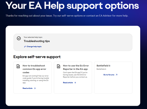 I have tried to contact you and it leads me to the forums or says contact an "EA Advisor" and there is no way to contact one?