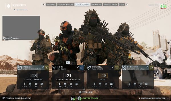 For several days now, it's been happening to me very often that at the end of a match, the final screen with the match progress and results freezes. Some icons at the bottom overlap, and I'm stuck without entering the next match. This happens to me both alone and with friends, and in any mode and map, including Battle Royale. The only solution is to quit the match, and my friends have to do the same to play together. For several days now, it's been happening to me very often that at the end of a match, the final screen with the match progress and results freezes. Some icons at the bottom overlap, and I'm stuck without entering the next match. In the locked screen I can move and switch between the various tabs results, progress, my team etc, but I cannot proceed with matchmaking.