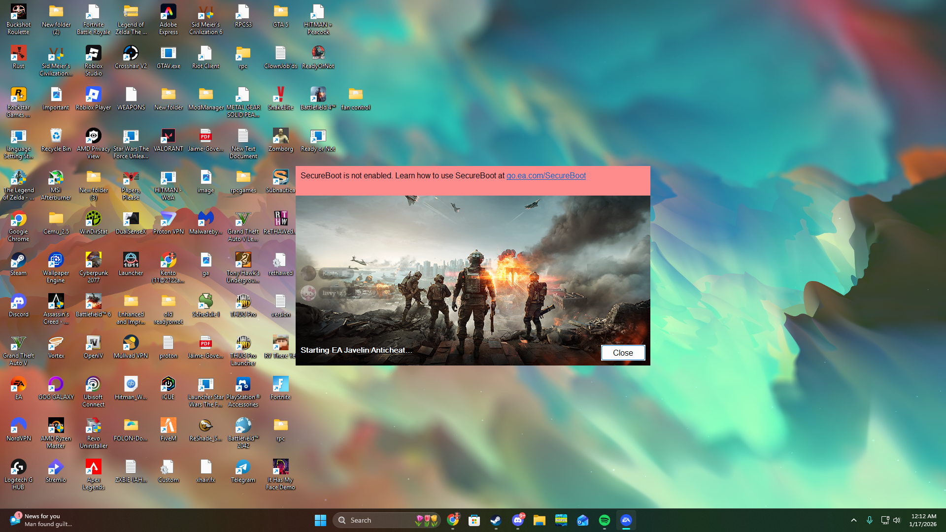 so for the last couple of days ive been unable to launch my bf6 due to secure boot "not" being on. The thing is that it is on and still its not working. anyone know a way to bypass it or just to get it to work. and yes ive reinstalled the game and the anticheat, I have also turned secure boot off and on. if it matter i did just change my psu. Hope someone can help im missing the last week of the battle pass cause of this!!.