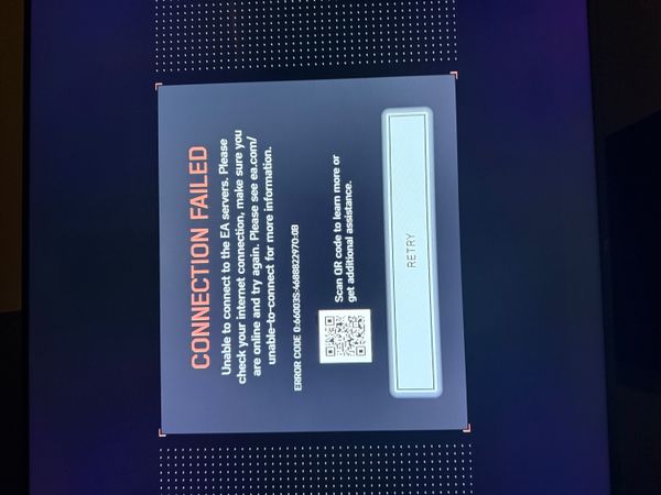 Recent DiscussionsAre servers actually down? Getting the same login error being reported by many others, but according to EA and PSN all servers are up and running. What is going on? Error codes 0:66003S:468882297O:0B Connection failed !PS5 Can't connect no matter what I try ! Anyone else ? Login Issues Error Code 0:66003S:468882298O:0B Welp it's my friends one night that his fiance isn't around and we can't play great job EA WTH you can't give us a LARGE MAP LIKE WE WANT. You can't fix bugs and now you can't even keep your network ...Login issues Cannot login Shows ERROR CODE 0:66003S:4688822970:0B Connecticut failure No conection to Server since hours,game completly new installed whats the problem?