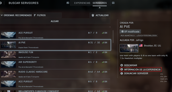 Le dan al botón de Información de la experiencia: