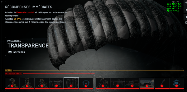 Oui j'ai bien le bf pro activé mais malheureusement je n'ai pas les récompenses qui vont avec. j'ai joint des screenshot ci dessous