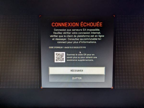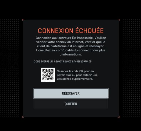 ‘’Connexion Échouée : Connexion au serveurs EA impossible alors que je suis bien connecté a internet j’ai tout essayer, relance mon ordinateur, relancé le jeu, relancé Steam mais rien ne va et toujours ce message. Merci de me rendre réponse assez vite :)