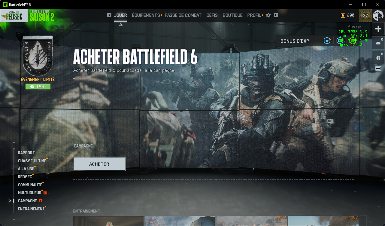Bonjour,Je rencontre un problème concernant le mode campagne de Battlefield 6. J’ai téléchargé le jeu pendant la période de bêta lorsqu’il était gratuit. Par la suite, le jeu est devenu payant, mais on me l’a offert, car je souhaitais l’acheter. J’ai donc activé la clé cadeau sur EA App, et le jeu apparaît bien comme étant en ma possession. Cependant, lorsque je lance le jeu et que je tente d’accéder au mode « Campagne », un message s’affiche me demandant d’acheter le jeu. Sur la capture d’écran 1, on peut voir le message en jeu qui me demande d’acheter le jeu. Sur la capture d’écran 2, on voit clairement que le jeu est bien activé sur EA App, avec la mention « Vous possédez : Jeu ». Je ne comprends donc pas pourquoi l’accès à la campagne m’est refusé malgré le fait que le jeu soit bien activé sur mon compte. Est-ce que quelqu’un a déjà rencontré ce problème ? Si oui, comment l’avez-vous résolu ? Merci d’avance pour votre aide.