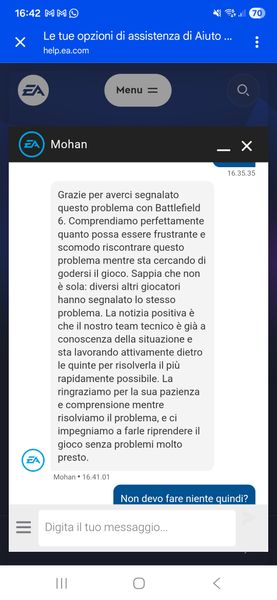 Ho verificato anche altri giochi EA come Battlefield 2042 e V, Split Fiction, FC25 e va tutto bene, Battlefield 6 invece non va. Su vari forum leggo che anche altri utenti hanno questo problema e che nessuno è riuscito a risolverlo.