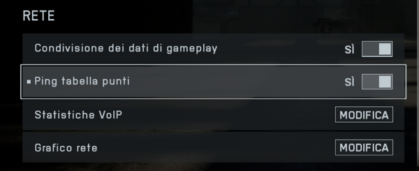 Se vuoi, puoi abilitare il ping nella tabella di gioco per capire le tue prestazioni nei confronti del server.