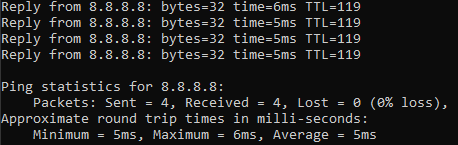 Il risultato che verrà fuori è un messaggio di riepilogo come questo:Lost = 0 significa nessun pacchetto perso.