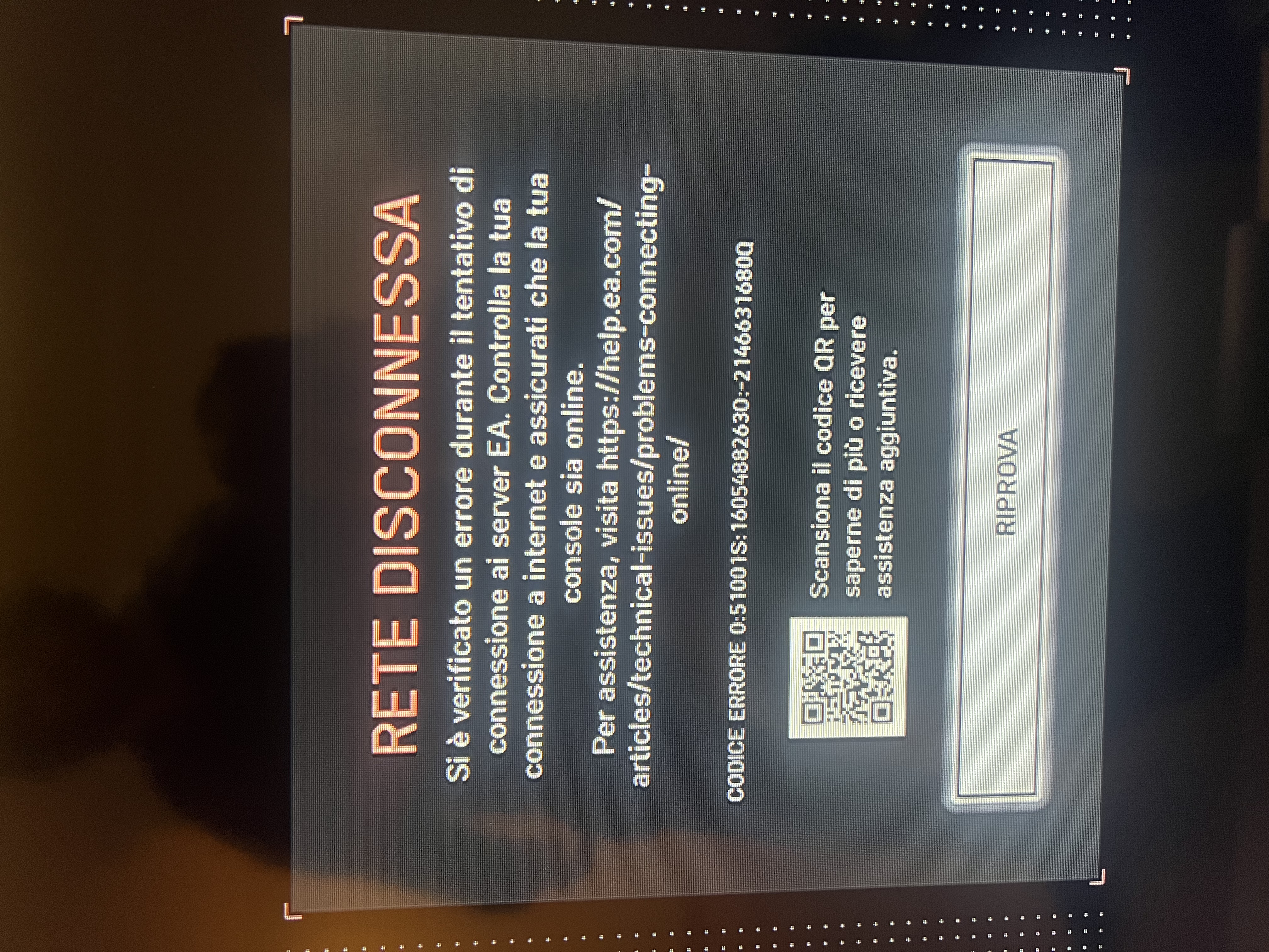 Mi compare provando ad entrare su battlefield rete disconnessa. Riesco ad entrare su qualsiasi altro gioco con la mia connessione ma non su battlefield.
