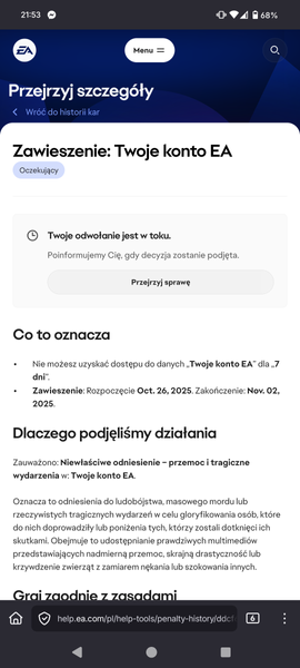 Jeśli jednak posiadacie nowe informacje, które mogą pomóc w ponownej weryfikacji, możecie je przesłać, wykonując kroki opisane na stronie EA Help. Tam również możecie śledzić status swoich zgłoszeń.