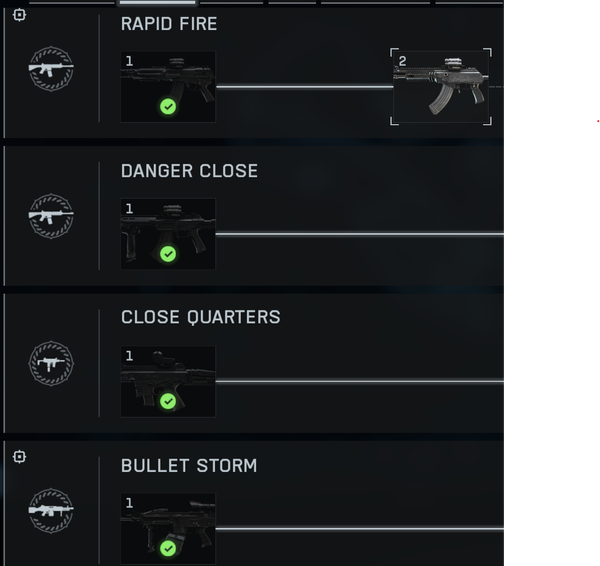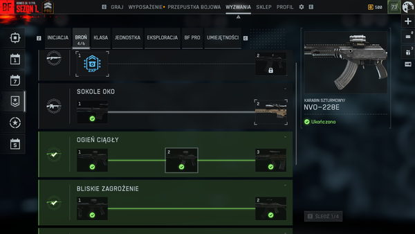 Witam. Problem zauważyłem na razie w dwóch wyzwaniach, Close Quarters 1 I Danger Close. Według licznika mam zaliczone pierwsze poziomy i co najlepsze zacząłem odblokowywanie następnych, a jednak dalej nie mam dostępu do broni SCW-10 i QBZ-192 w arsenale widnieją jako zablokowane. Do odblokowania po wykonaniu zadań.