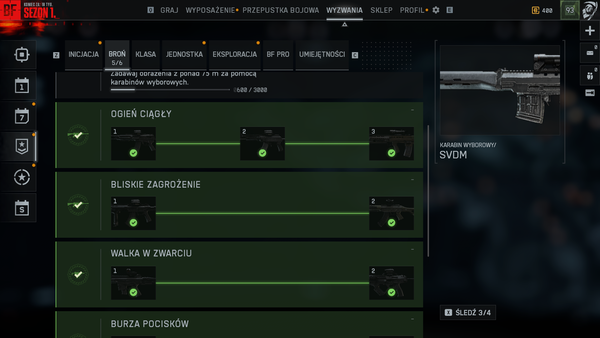Witam. Problem zauważyłem na razie w dwóch wyzwaniach, Close Quarters 1 I Danger Close. Według licznika mam zaliczone pierwsze poziomy i co najlepsze zacząłem odblokowywanie następnych, a jednak dalej nie mam dostępu do broni SCW-10 i QBZ-192 w arsenale widnieją jako zablokowane. Do odblokowania po wykonaniu zadań.