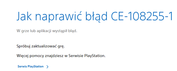 Jeśli sytuacja się utrzyma podsyłam link bezposrednio do strony SONY: Jak naprawić błąd CE-108255-1