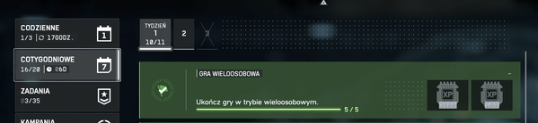 Ktoś się spotkał z podobną sytuacją? Nagle w 1 tygodniu cotygodniowych wyzwań dodało mi do puli jedno zadanie, którego nie widać. Przez co jest 10/11 i nie mogę zrobić głównego zadania z 2 tygodnia xD No chyba że jest to jakieś super tajne zadanie i trzeba zgadnąć o co chodzi..