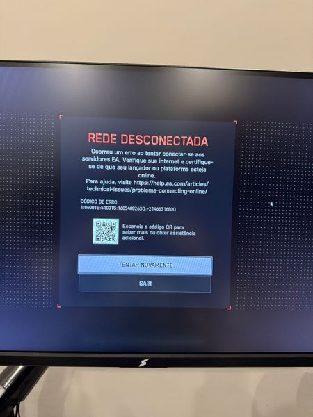 Comprei o BF6 e vinha jogando normalmente desde o lançamento, mas hoje dia 28 de outubro quando lancou a temporada 1, joguei durante a tarde, parei, fui retornar a jogar inicio da noite e o jogo nao entra mais, da erro de REDE DESCONECTADA, número do erro 1:86001S:51001S:16054882630:-21466316800, ja fiz de tudo, desliguei modem, reinstalei o jogo todo, limpei cache e nada, todos os outros jogos eu jogo normalmente, menos esse battlefield 6, ja estou a ponto de pedir reembolso, pq no dia que mais queria jogar o novo modo, o jogo nao entra mais e ninguem resolve.
