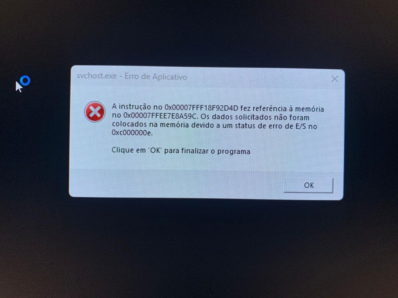 O jogo sempre apresenta mensagem de que "meus arquivos estão danificados". Uma vez apresentou uma mensagem referenciando os seguintes endereços conforme imagem anexa: 0x00007FFEE7E8A59C, 0x00007FFF18F92D4D e 0xc000000e.