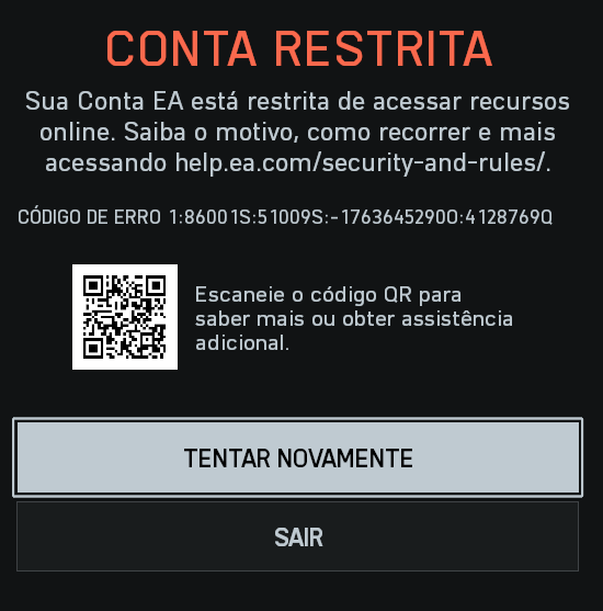 Ao entrar no BF6 REDSEC a seguinte mesnagem aparece para mim "sua conta EA está restrita de acessar recursos online". Dessa forma não consigo jogar.