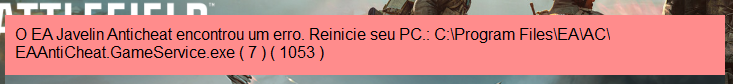 Quando tento iniciar o jogo aparece o seguinte erro " O EA Javeling Anticheat encontrou um erro. Reinicie seu PC.:Cprogram Files\EA\AC\EAAntiCheat.GameService.exe (7) (1053).