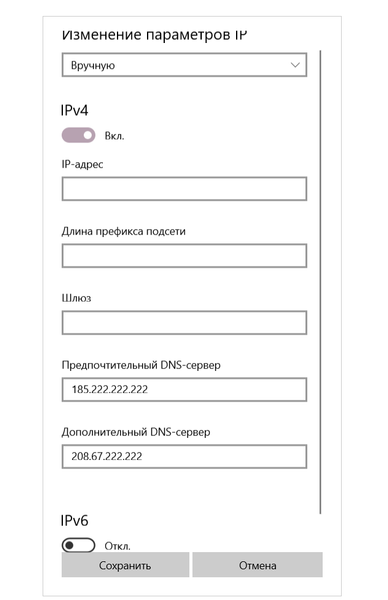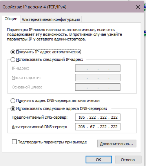 Предпочитаемый DNS-сервер: 185.222.222.222