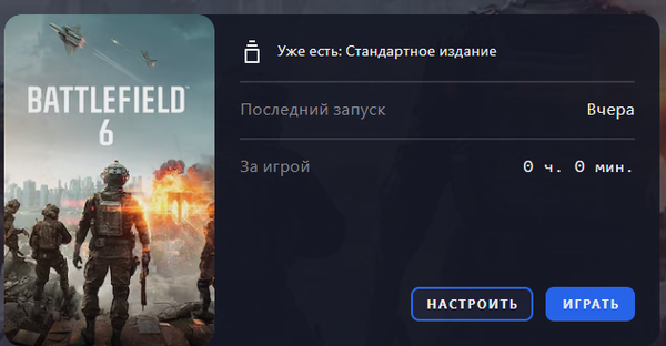 Купил Battlefield 6 в Epic Games. Сделал привязку игры в EA. Скачал, установил, но не идет счетчик времени, сколько провел времени за игрой.
