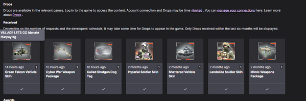 Я посмотрел три часа стримов, оформил платную подписку, подключил аккаунт EA и нажал на кнопку получения Drops, однако из всех наград я получил только Green Falcon Vehicle Skin. Остальные награды (Cyber War Weapon Package, Versatile Soldier Skin и Called Shotgun Dog Tag) получены не были, никакого уведомления об их получении в игре нет, хотя Twitch отображает, что я получил уже все награды. Что мне делать в этой ситуации, чтобы получить потерянные награды Drops? Особенно грустно за Versatile Soldier Skin, т.к. на него были потрачены реальные деньги.