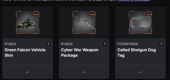 Я посмотрел три часа стримов, оформил платную подписку, подключил аккаунт EA и нажал на кнопку получения Drops, однако из всех наград я получил только Green Falcon Vehicle Skin. Остальные награды (Cyber War Weapon Package, Versatile Soldier Skin и Called Shotgun Dog Tag) получены не были, никакого уведомления об их получении в игре нет, хотя Twitch отображает, что я получил уже все награды. Что мне делать в этой ситуации, чтобы получить потерянные награды Drops? Особенно грустно за Versatile Soldier Skin, т.к. на него были потрачены реальные деньги.