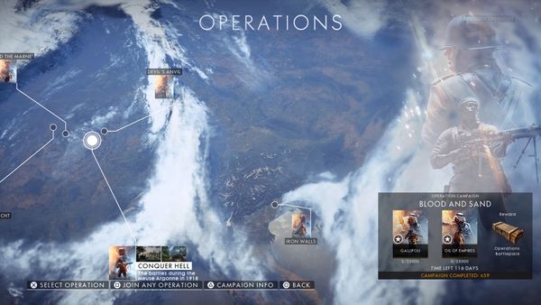 Note its more like 220 days or something as I remember playing Blood and Sand all the way back in December 2020 and its been that or nothing ever since and then they finally set it at a record 150 days in a row!. If someone has an exact count of total Blood and Sand days, let me know. I'm on PS4, US West. Right now people are so sick of Gallipoli and Oil of Empires there are often non of these operations running at all. And when I do find a game its almost always in the EU and every now and then in US East. So I've gotten pretty good at playing in high ping (180ms) and just capping objectives to get the points for Ops packs.