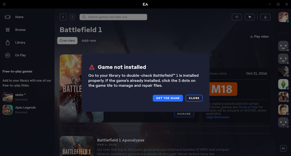 Then I open the game directory files and launch the game from there. The EA app just shows me this kind of error message.