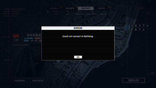 Battlescreen stop working and Couldn't connet to Battlelog in-game.