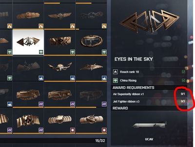 And for the next one, you need to win one round of Air Superiority: I can see that you have played air superiority, but you have yet to win a game round of that, to get the minimum 1 required ribbon for the Eyes in the Sky assignment: