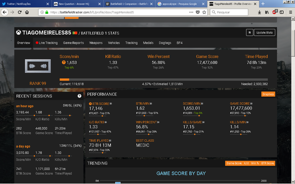 I dont know if battlefieldtracker website stats can be used as reliable source to compare with the oficial stats from the companion, but i will leave a screenshot anyway.