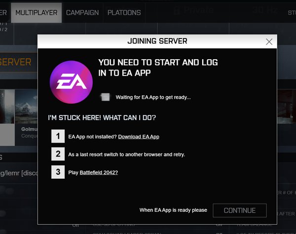 Join BF3 & BF4 server via battlelog using Chrome prompted to start EA app then just stuck there. Uninstall/reinstall battlelog web plugin has no effect at all.