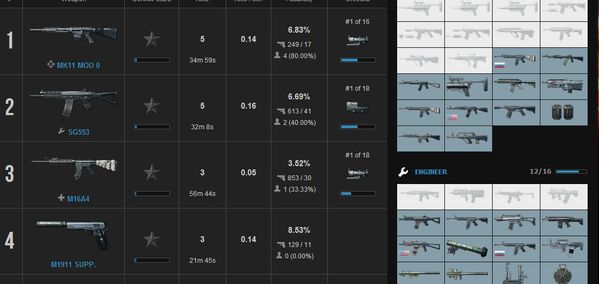 For unlocks, you can just click the blue name of the weapon which will show the following screen: