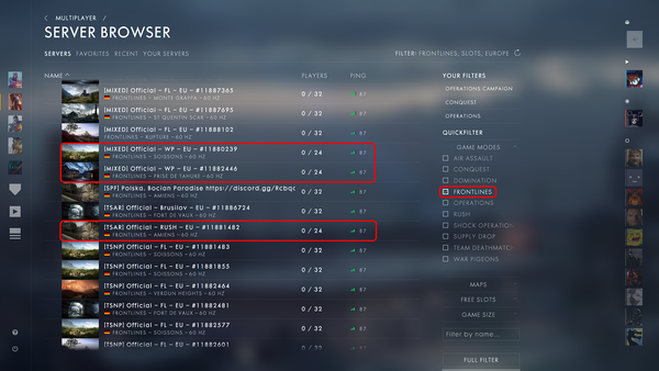 @EA_Leeuw, I can confirm that official servers will not switch between game modes (only switching between maps) unless it's a private server (the owner can change the server configuration at anytime). If you look at the provided picture earlier, I selected only Conquest servers and there are 2 official servers categorized as Operations which isn't true.
